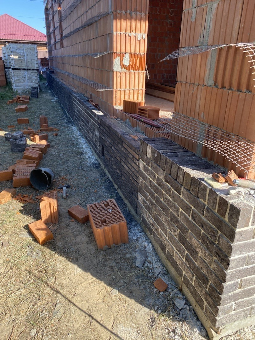 Цоколь выполнен из полнотелого керамического кирпича.