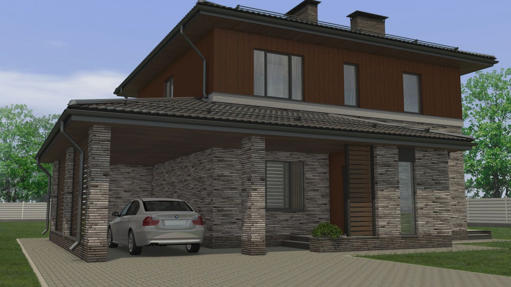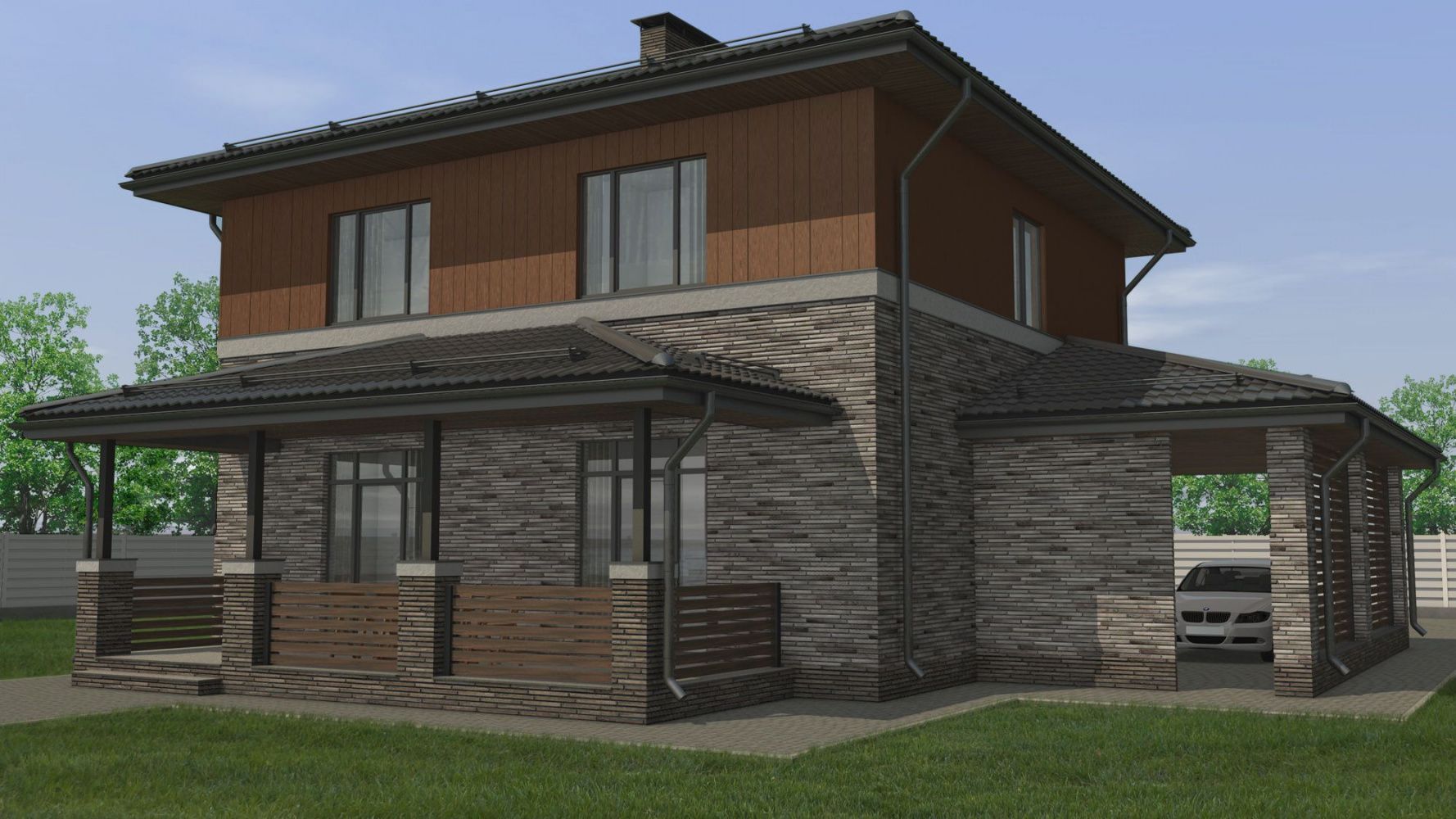 • Стены (2 этаж) - Планкен/кедрал коричневый/С30 Теплая земля
