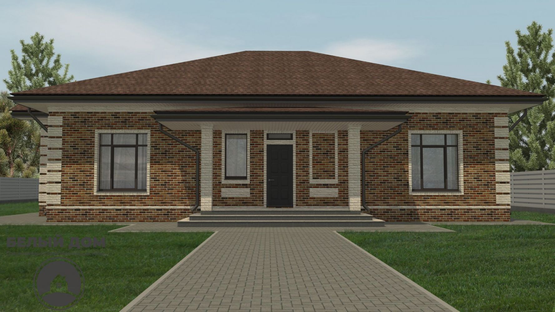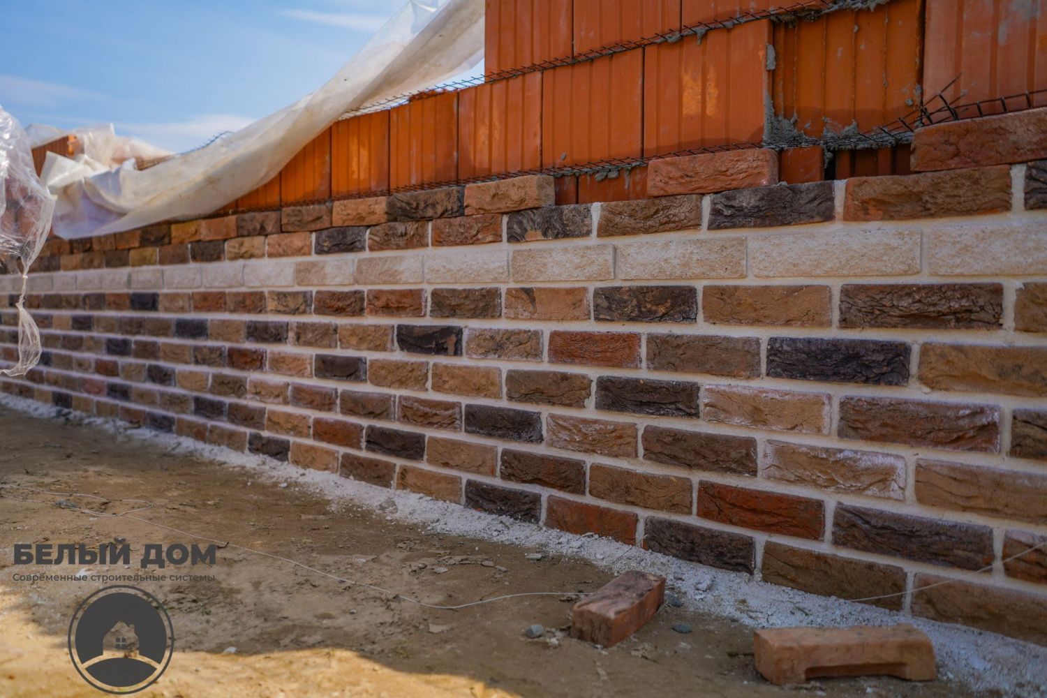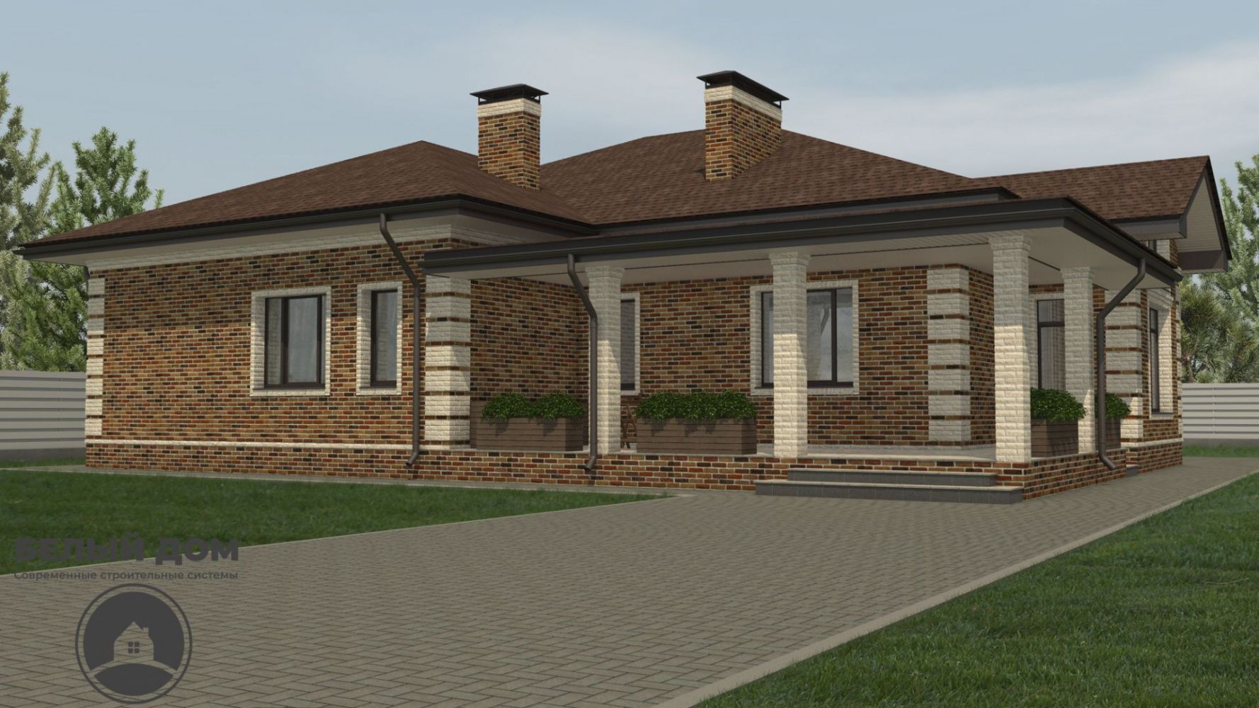 • На вставках - гиперпрессованный кирпич Q-brick. Данные кирпичи имеют непревзойденное соотношение цены/качества проверенные временем, и несомненно великолепный внешний вид. В данном случае применяется цветная смесь Perel, цвет СУПЕР-БЕЛЫЙ.
