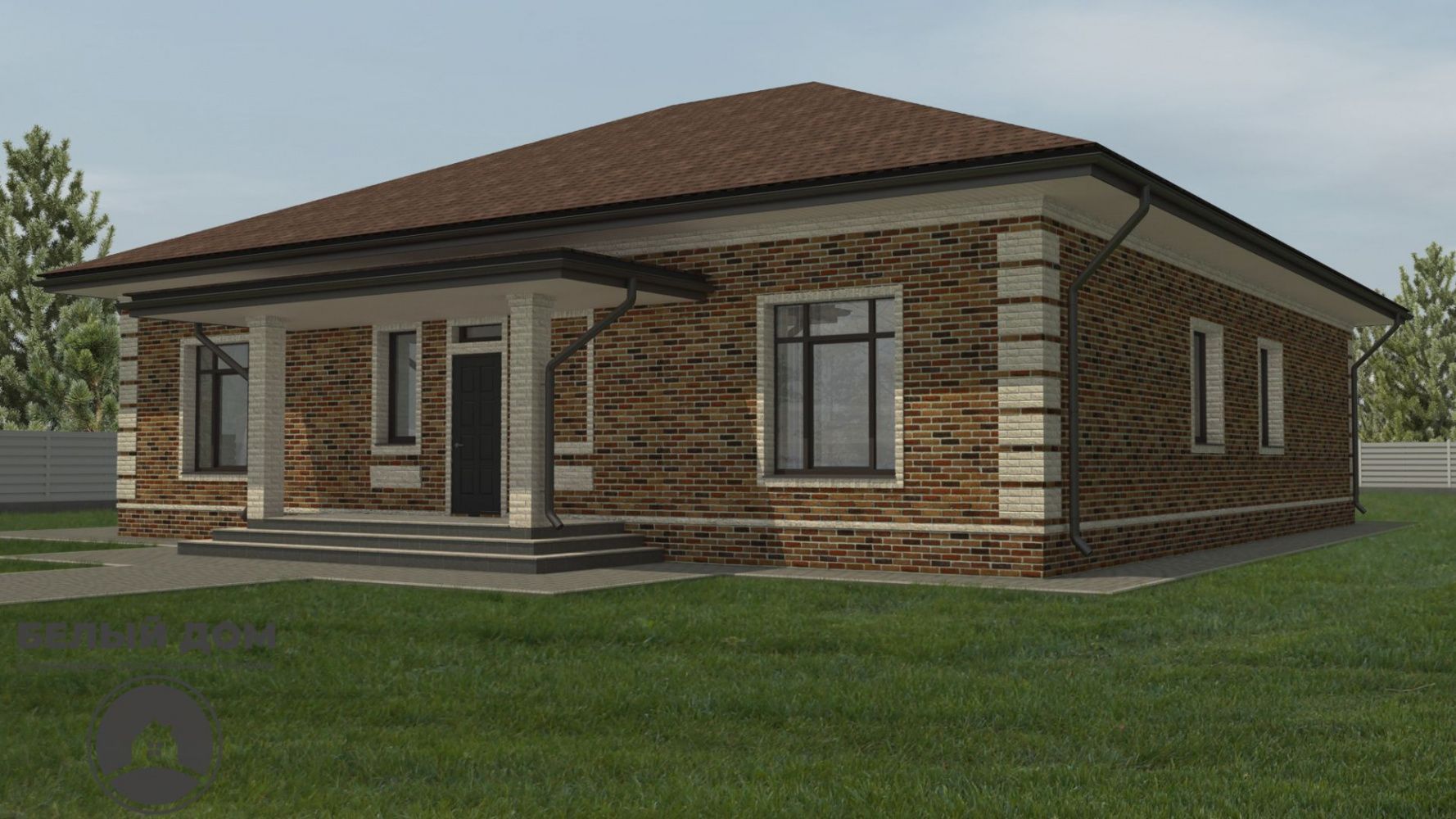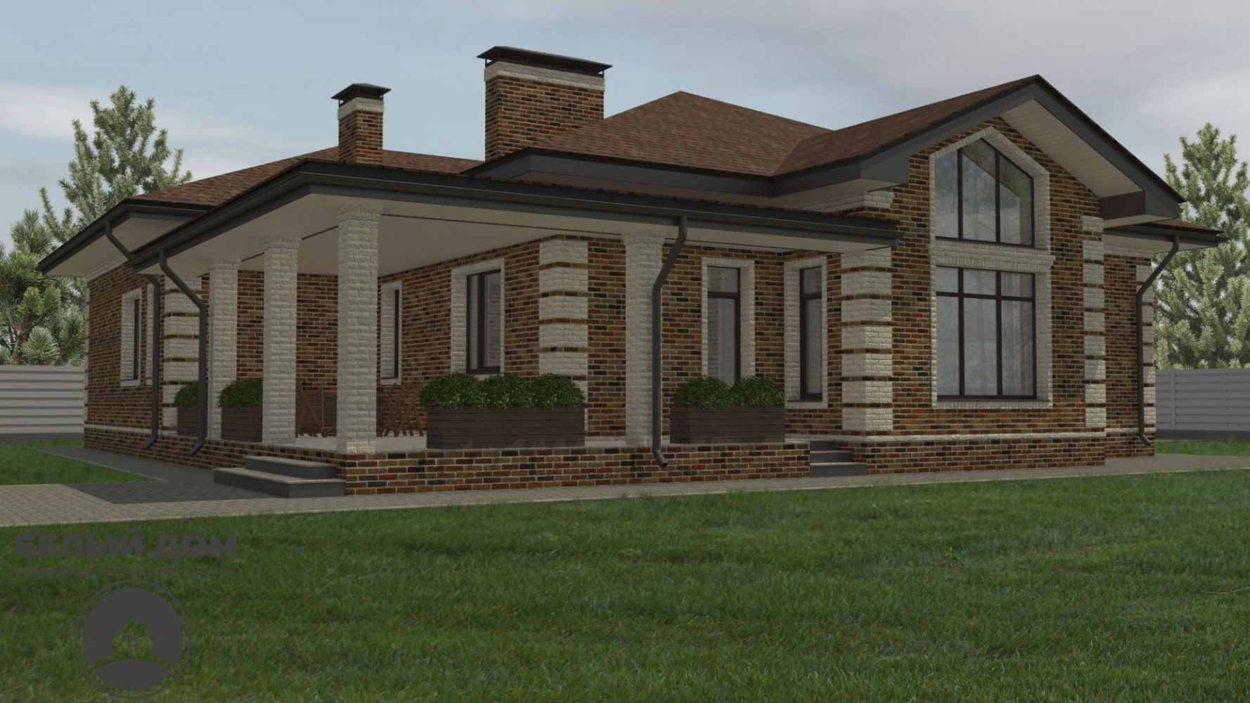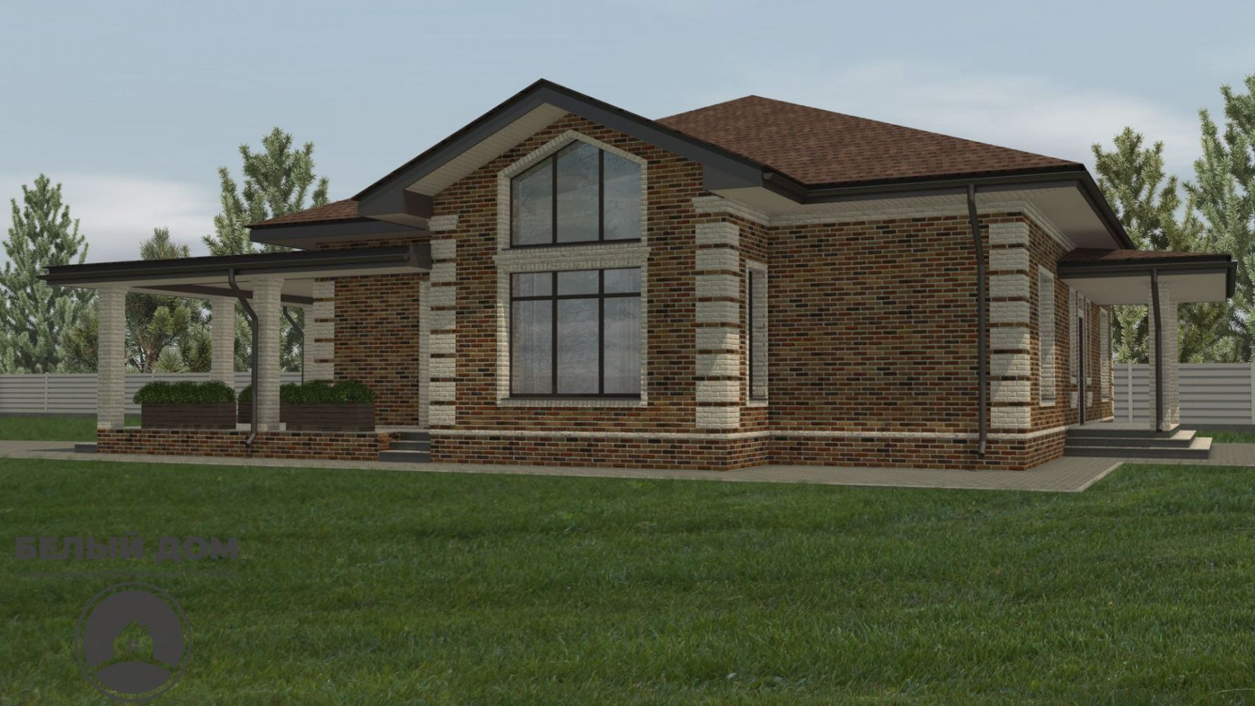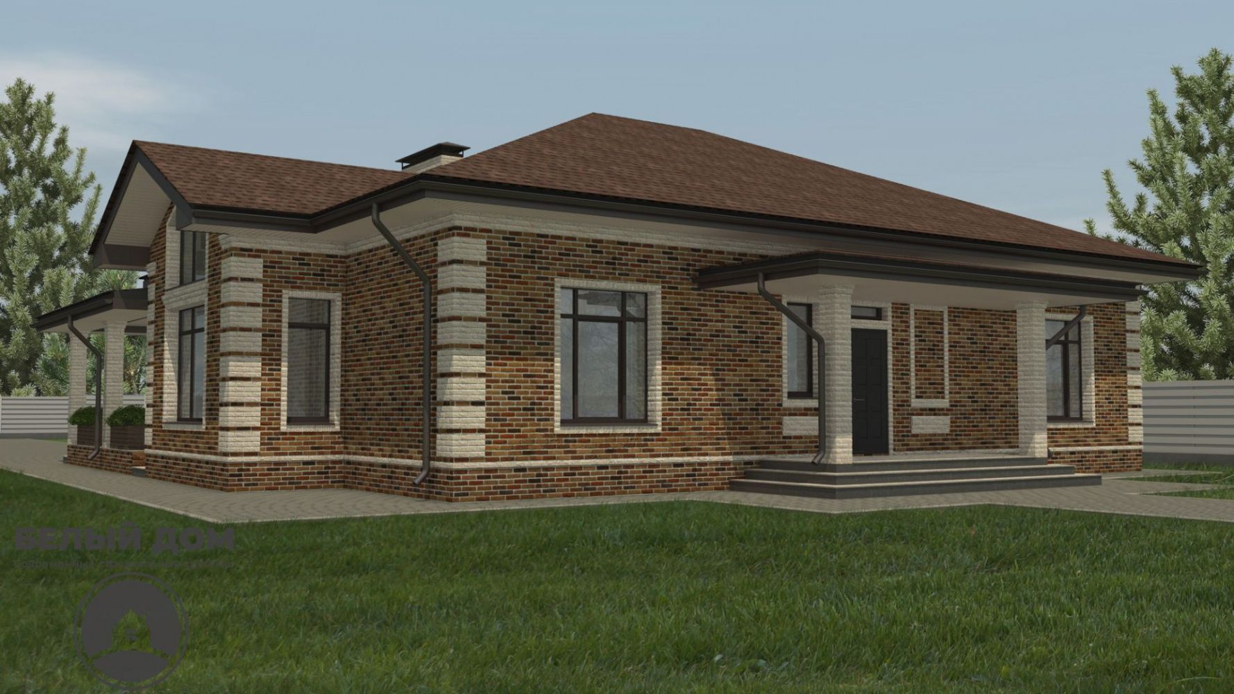 • На вставках - гиперпрессованный кирпич Q-brick. Данные кирпичи имеют непревзойденное соотношение цены/качества проверенные временем, и несомненно великолепный внешний вид. В данном случае применяется цветная смесь Perel, цвет СУПЕР-БЕЛЫЙ.